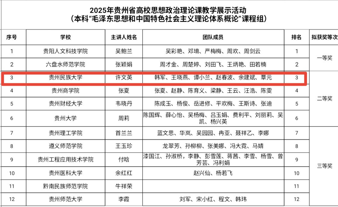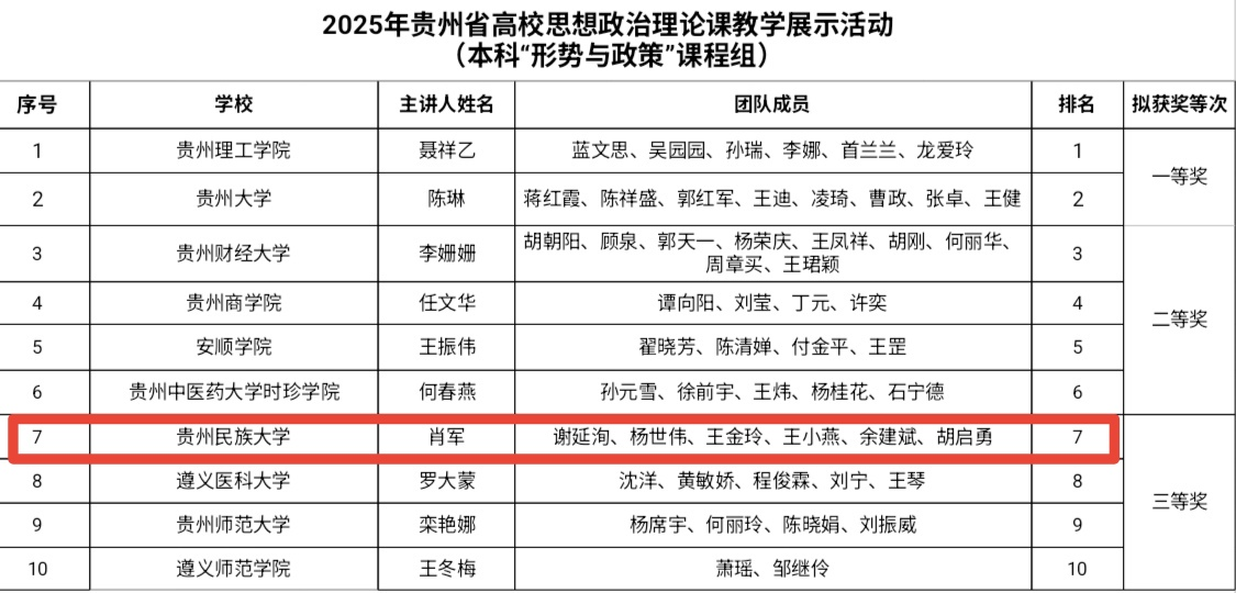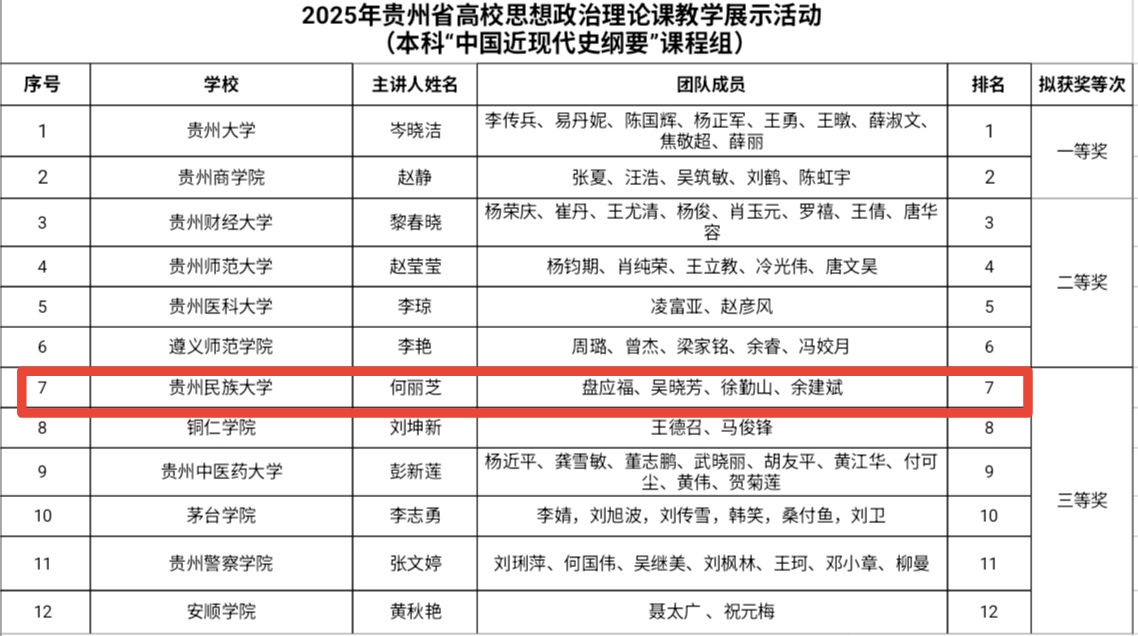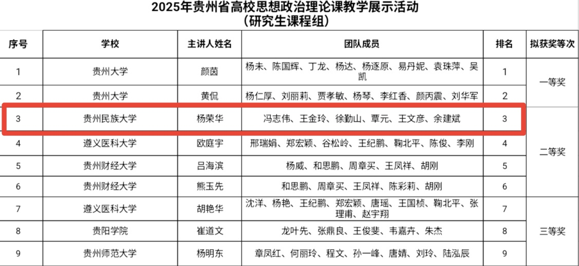 上一条:吴一文到马克思主义学院走访调研 下一条:把思政课搬到贵州大地上|10支高校团队这样“走心”又“走新”
