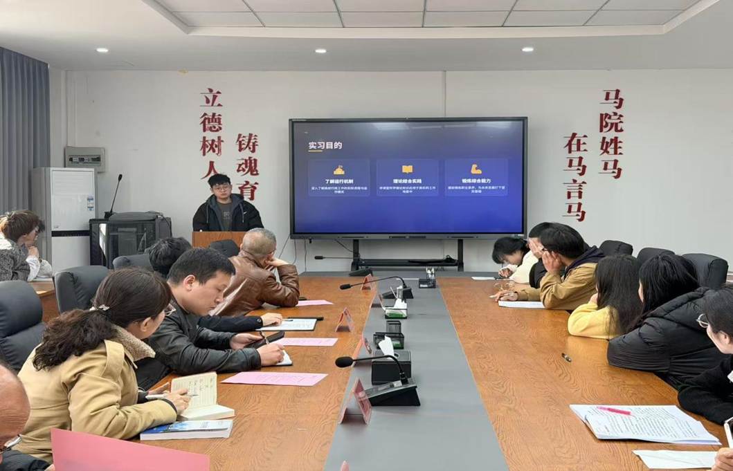 首先,由余建斌同志系统介绍2022级思想政治教育专业学生毕业实习开展的基本情况。他从实习部署、分组安排、过程督导等方面进行全面回顾,强调毕业实习是思政专业人才培养的关键环节,是理论联系实际的重要桥梁。