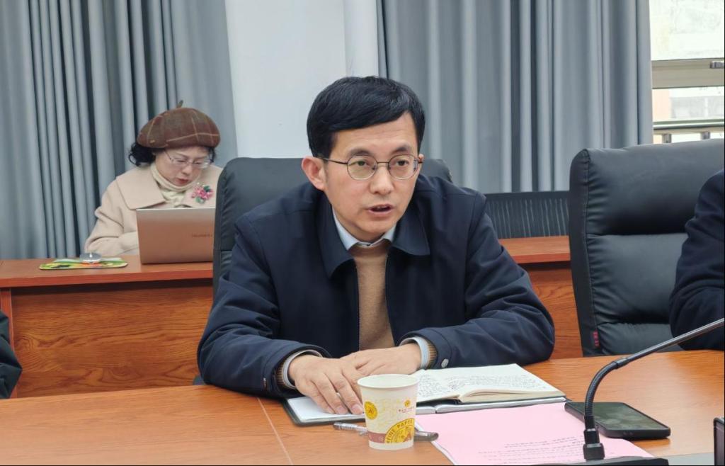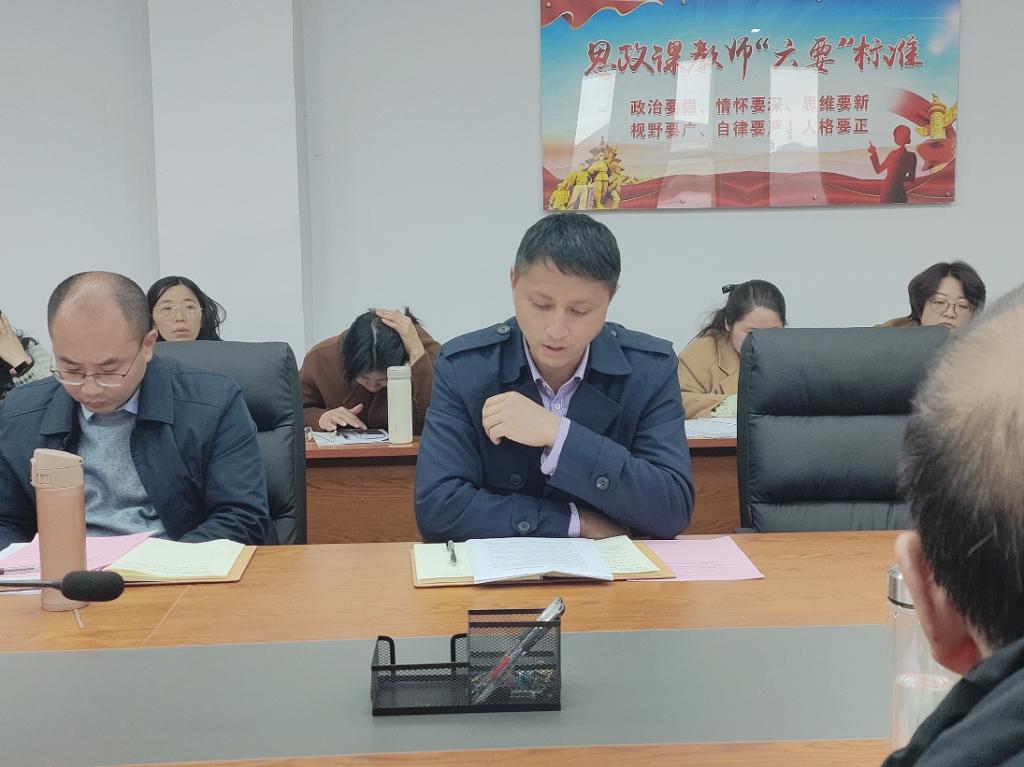 校党委常委、副校长董强教授讲话,他对全体思政课教师提出了三点要求,一是学院思政课教师要对标对表“3·18”重要讲话精神要求,用心用力用情上好思政课;二是要坚持教育教学与学科专业建设双向互促,以学院内涵建设成效助力学校高质量发展;三是要强化底线红线意识,守牢立德树人、铸魂育人的思想阵地,持续提升思政课教学质量与育人成效。