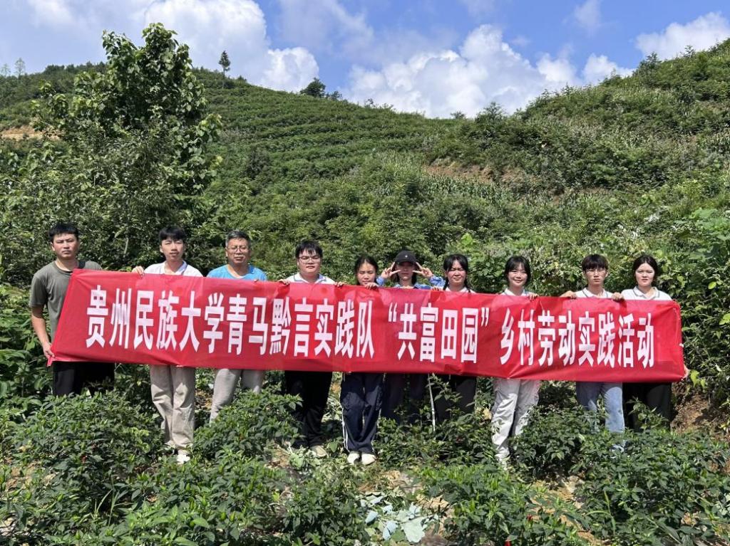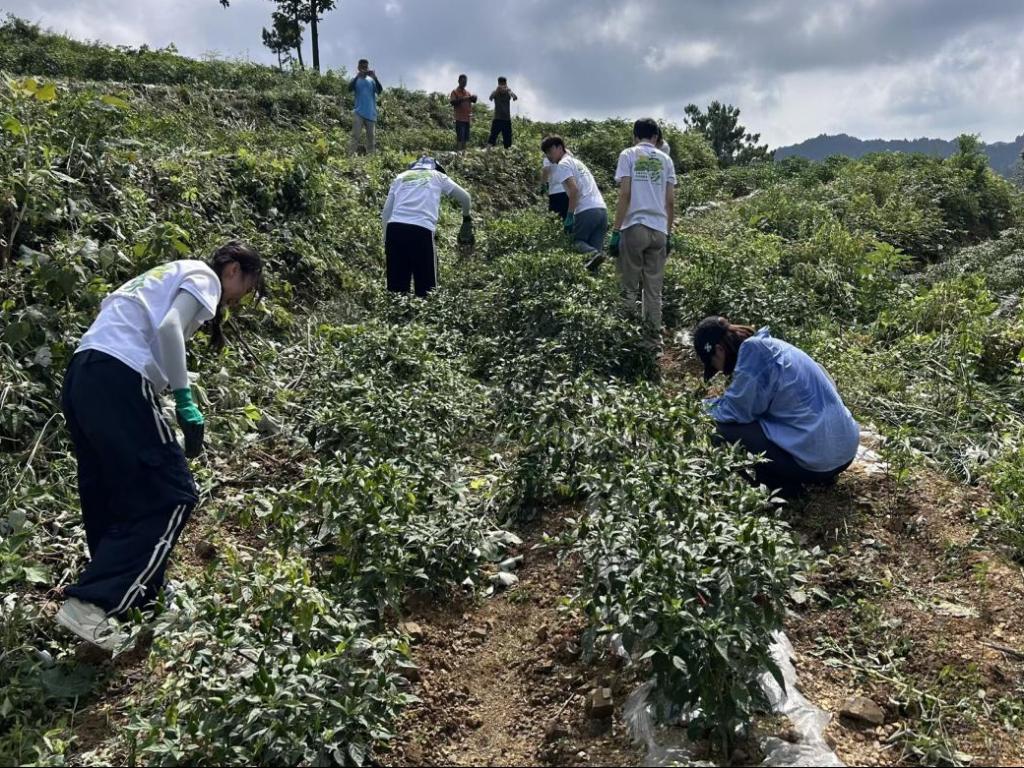 2025年7月26日,为深入了解民族地区乡村的发展现状,增进实践队队员对报京乡松柏村特色农业基地发展情况的了解,贵州民族大学马克思主义学院“青马黔言”宣讲实践队前往贵州省黔东南州镇远县报京乡松柏村辣椒基地,开展了乡村劳动实践活动。